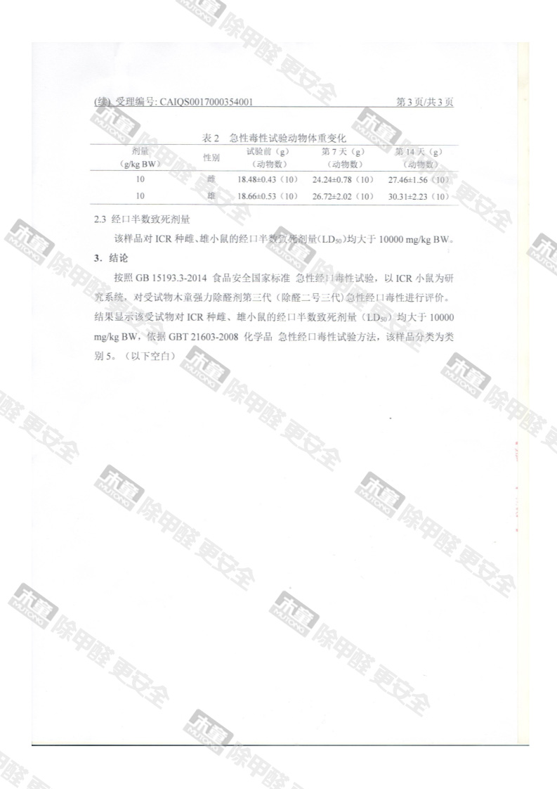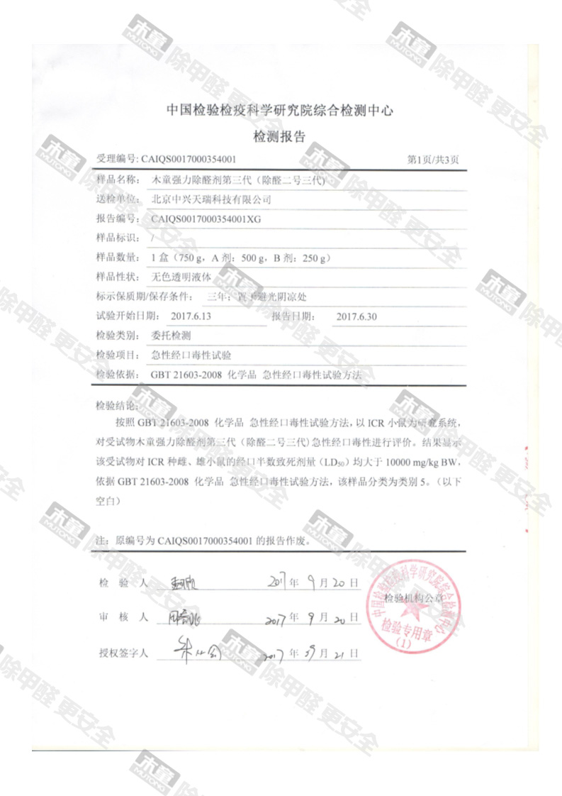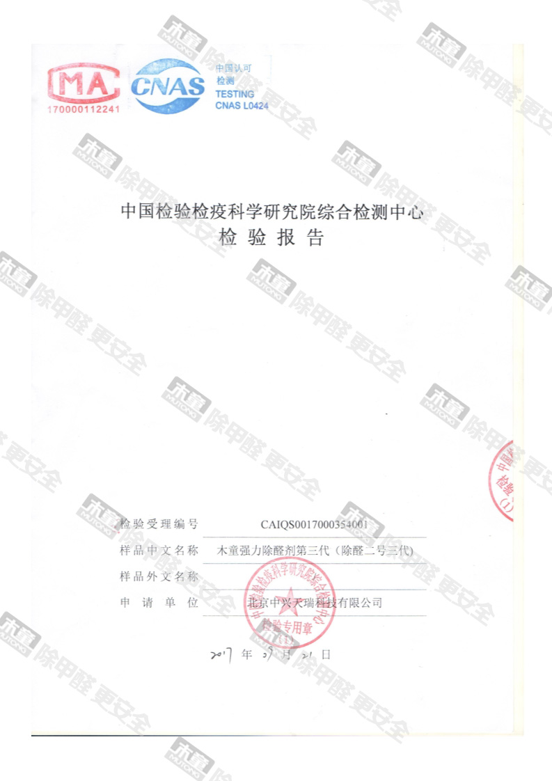 網站首頁 - 產品中心- 檢測報告- 木童除醛2號三代安全性檢測報告